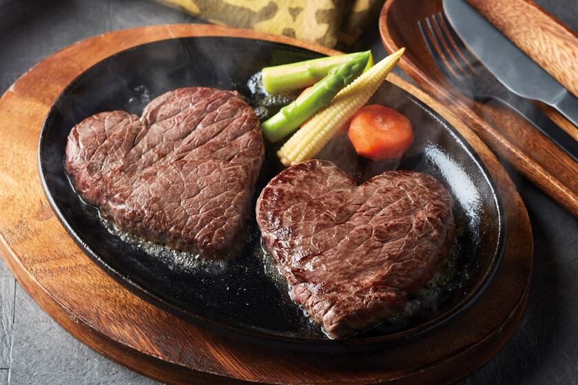 国産牛のモモ肉をハート形にカット。