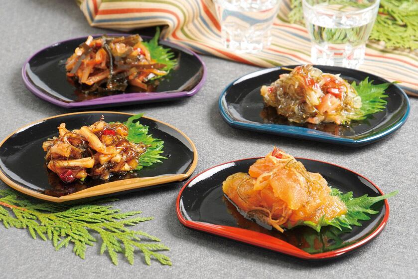 商品内容:内容量:数の子松前漬・切干松前漬・北寄松前漬・するめ松前漬 各150g、賞味期間:製造日より冷凍180日