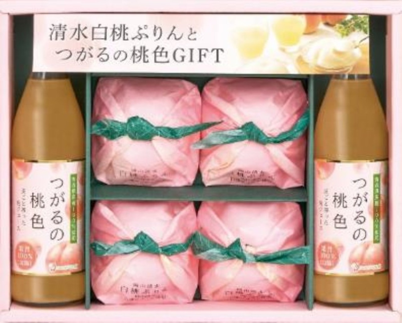 白桃ぷりん135g×4、青森県産桃100%ジュース500ml×2