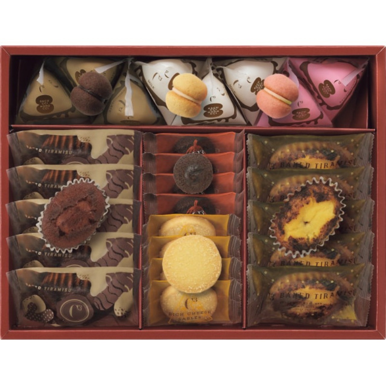 商品内容:●焼きティラミス・焼きティラミスショコラ×各5、サクッチホロッチ×8(ミルク・チョコレート×各3、いちご×2)、ハイカカオブラウニー・芳醇チーズサブレ×各4
