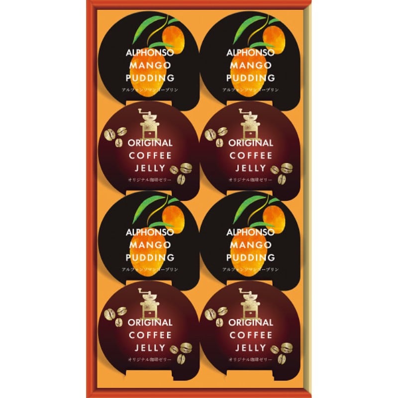 商品内容:●オリジナル珈琲ゼリー52g×4、アルフォンソマンゴープリン52g×4