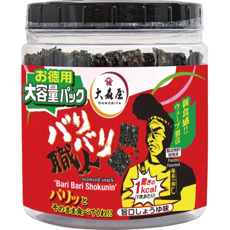 独自製法で新食感を実現しました。おやつ感覚の味付のりで、そのままバリバリお召し上がりください。