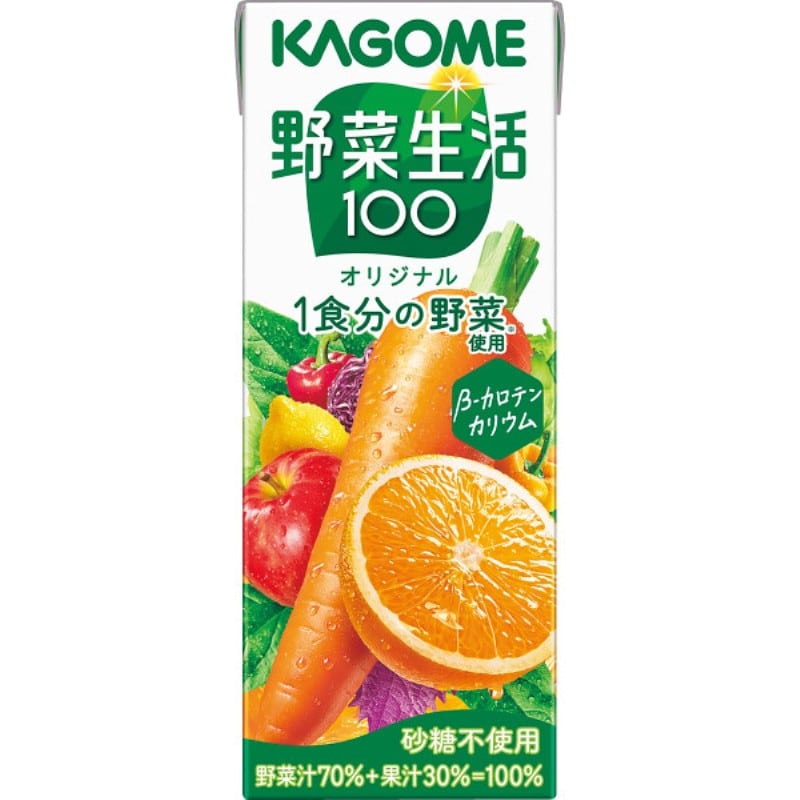 「野菜生活100」オリジナルは、20種類の野菜と3種類の果実を使用した野菜果実ミックスジュースです。
