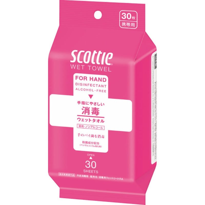スコッティ ウェットタオル 消毒 ノンアルコールタイプ(30枚) 77116 ×10 【送料込】(沖縄・離島は別途)