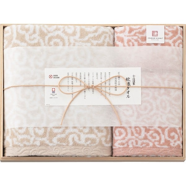 「今治謹製 紋織タオル」は木目も美しい木箱入りタオルです。箱を手に取った瞬間の木の温もりは感謝の気持ちをお伝えするタオルギフトに花を添えます。