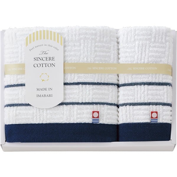 ネイビーとホワイトのコントラストが美しい品格あふれる今治製のタオルギフトです。