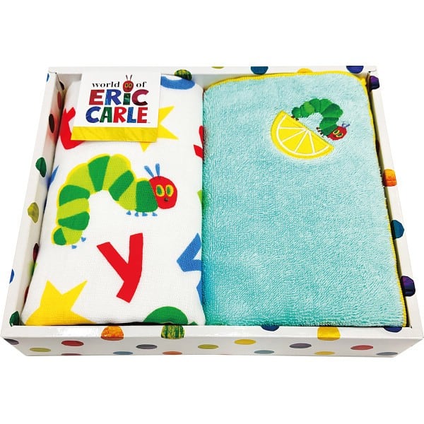 大胆な色使いで大人から子供まで幅広く愛されている絵本「はらぺこあおむし」の、鮮やかな色使いのタオルセットです。