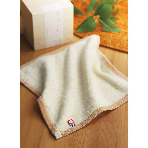今治謹製 千歳はんかちタオルハンカチ(木箱入) イエロー