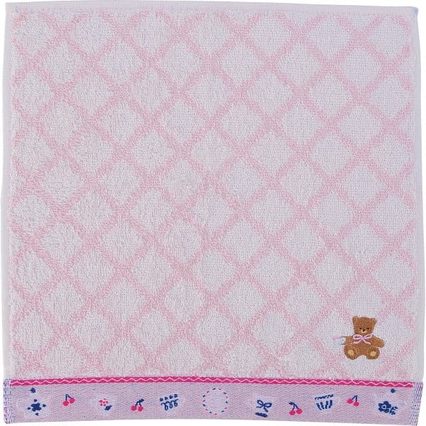 ロッティ 婦人タオルハンカチ チェック×くま刺繍ピンク RTT-64 PI