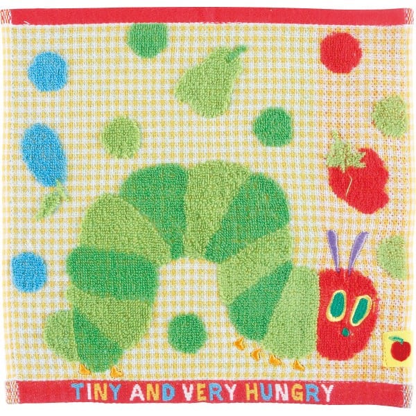 はらぺこあおむしのタオルハンカチ。はらぺこあおむしの世界を楽しめる商品です