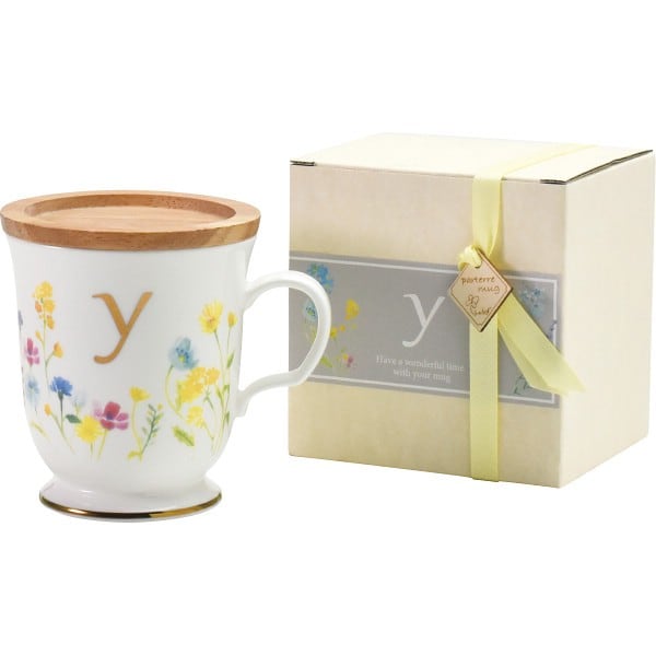 やさしい花々がデザインされた上品な絵柄のマグカップ。