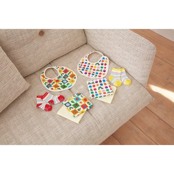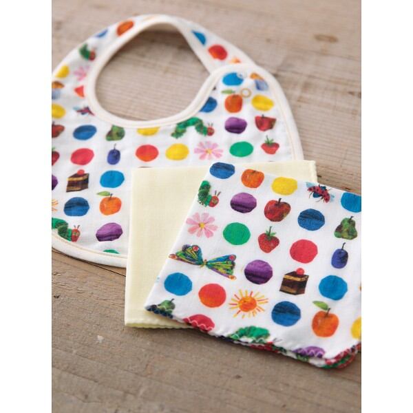 人気絵本のはらぺこあおむしとのコラボシリーズ。何枚あっても助かるスタイとガーゼハンカチ2枚が入ったギフトセットです。
