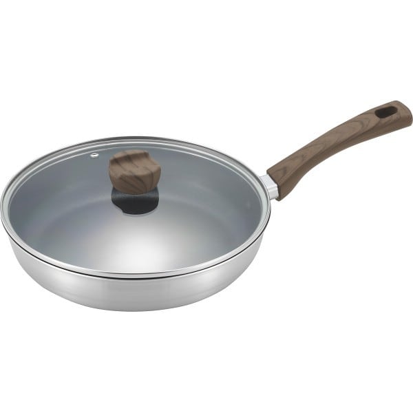 道具にこだわれば、料理の楽しみはさらに深く。プロに学べ、料理の世界を楽しむ、厳選道具。熱伝導の良い三層構造で、内面はこびりつきにくいフッ素樹脂加工です。焼く・炒める・煮込むなど、ライフスタイルに合わせた使いこなしができます。ガラス蓋のつまみは、菜箸やツールなどちょい置きができる形状です。