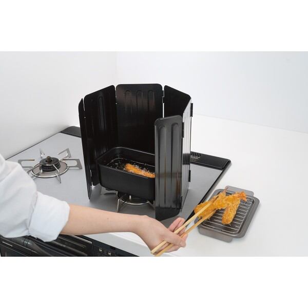 しっかり覆えて安定感アップの6面オイルガード。折りたたんでスッキリ収納もできます。