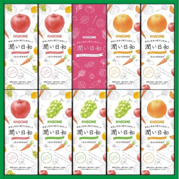 「潤い日和」ふじミックス・清見オレンジミックス・シャインマスカットミックスの3種を詰め合わせたギフトです。1本(200ml)に1食分の野菜120g分を使用しながら、フルーティーで贅沢な美味しさをお楽しみいただけます。
