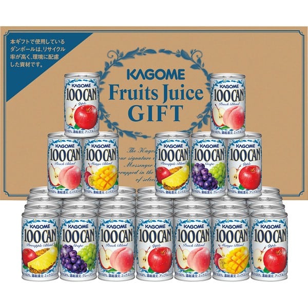 果実のおいしさが活きている100%フルーツジュースのベストセラー「100CAN」の詰め合わせ。