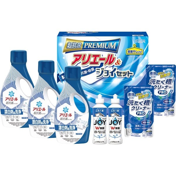 菌を寄せ付けないクリーンギフト。抗菌力・洗浄力に優れたアリエールとダブル除菌のジョイをセットしました。