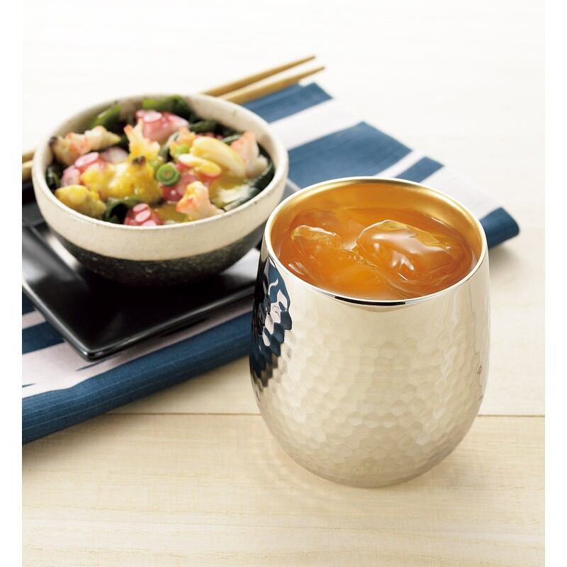 燕熟の技 ステンレス二重ロックカップ250ml(内面金メッキ) EJA-750 御祝.お返し,引出物,記念品などのご用途にも好適