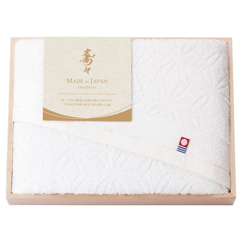寿々〜じゅじゅ〜 日本製 愛媛今治 木箱入りフェイスタオル 白 12016 御祝.お返し,引出物,記念品などのご用途にも好適