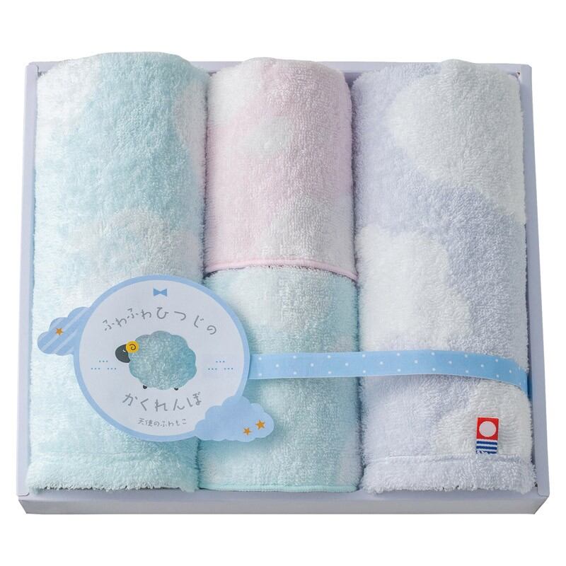 天使のふわもこ ふわふわひつじのかくれんぼ ウォッシュ2P・タオルハンカチ2P FH-520 御祝.お返し,引出物,記念品などのご用途にも好適