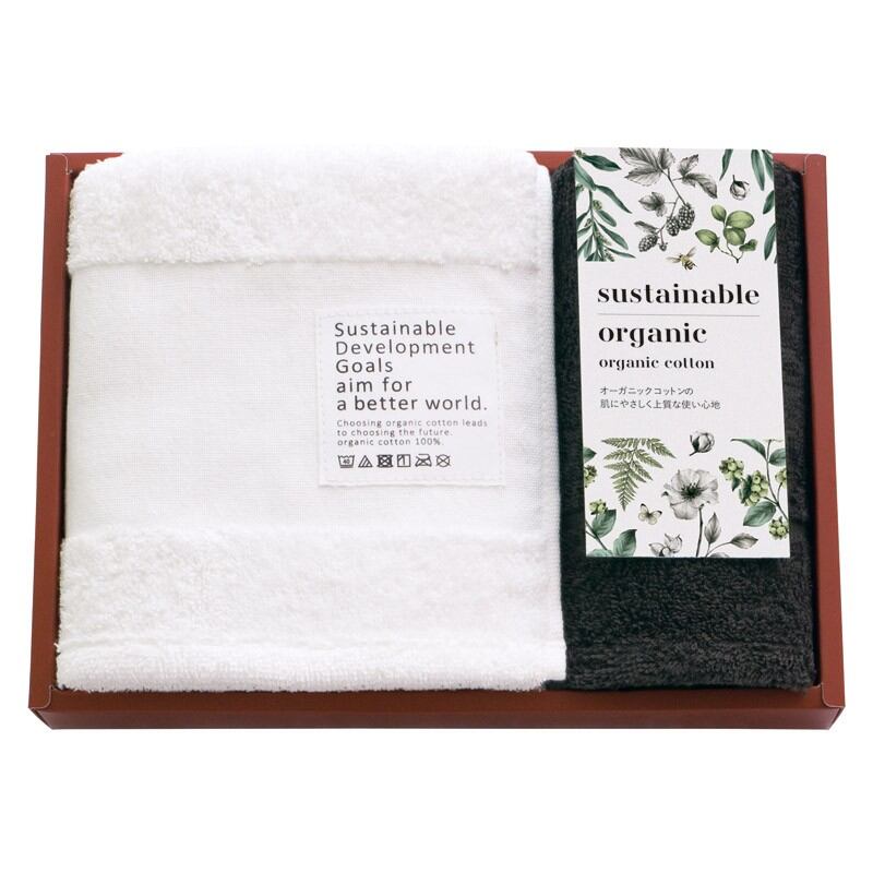 国際認証取得オーガニック フェイス1P・ハンドタオル1P グリーン 64720 御祝.お返し,引出物,記念品などのご用途にも好適