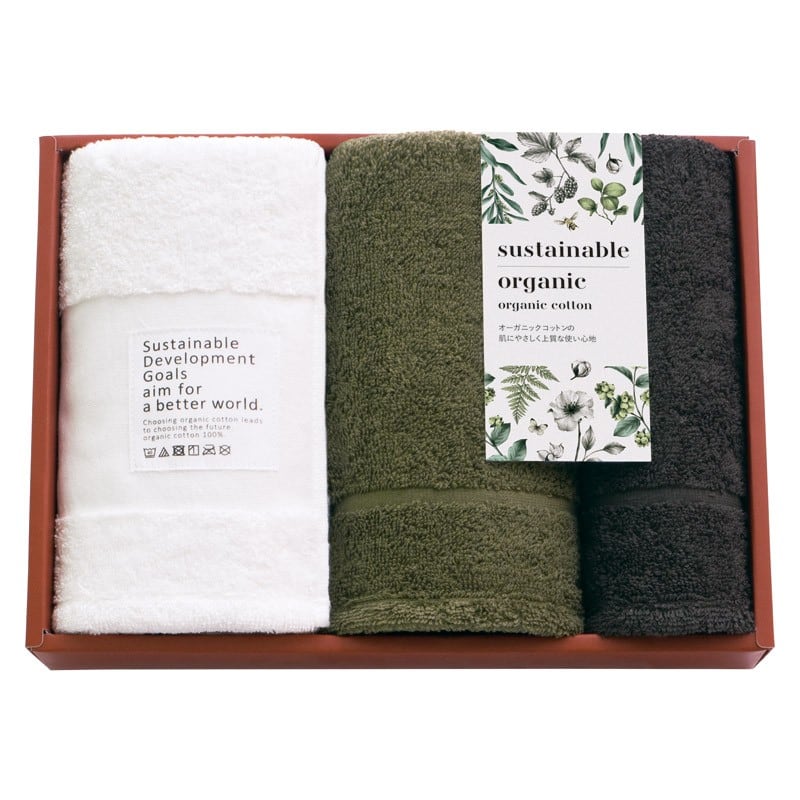 国際認証取得オーガニック フェイス2P・ハンドタオル1P グリーン 64732 御祝.お返し,引出物,記念品などのご用途にも好適