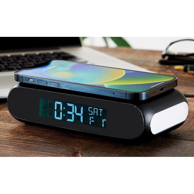 ワイヤレスチャージャークロック(ナイトライト付) 6192 御祝.お返し,引出物,記念品などのご用途にも好適