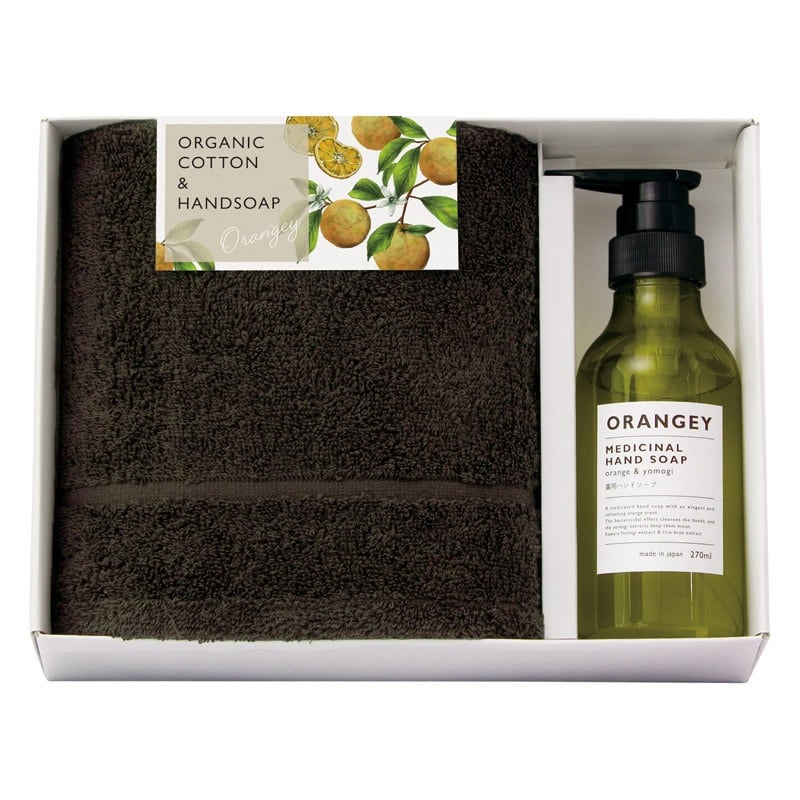オランジー 薬用ハンドソープとオーガニックタオルセット 19030 御祝.お返し,引出物,記念品などのご用途にも好適