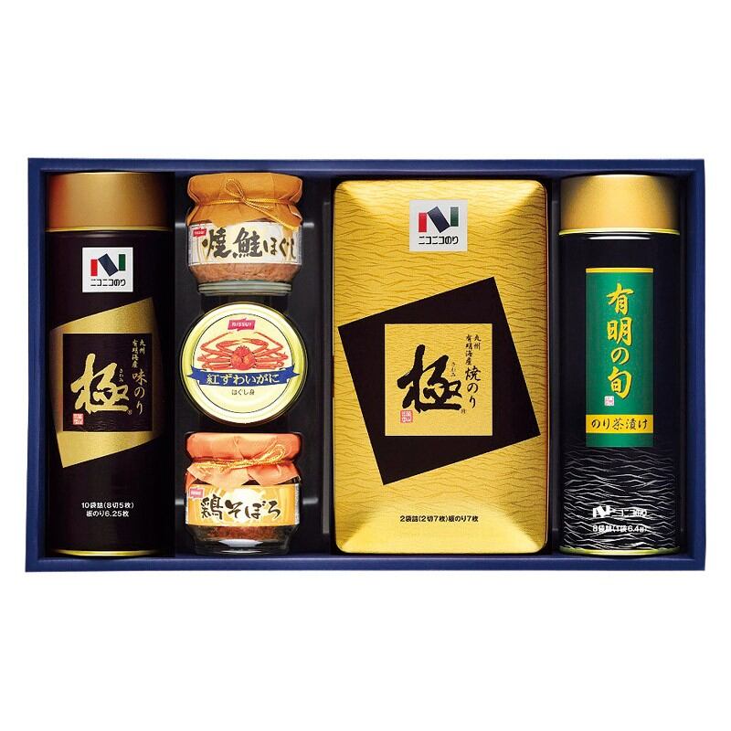 ニコニコのり 焼のり・味のり・茶漬け・カニ缶・瓶詰詰合せ MB-50R 御祝.お返し,引出物,記念品などのご用途にも好適