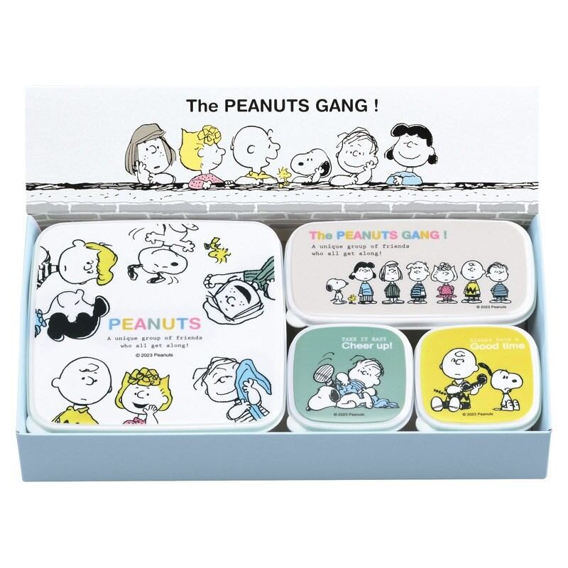 くつろぎムードのスヌーピー&ピーナッツの仲間たちがかわいい容器セット。薬味やおかずの取り分け、お弁当のデザート入れなどに。冷蔵庫内でも重ねて保存しやすいフタ付容器。フタを外せば電子レンジにもかけられます。