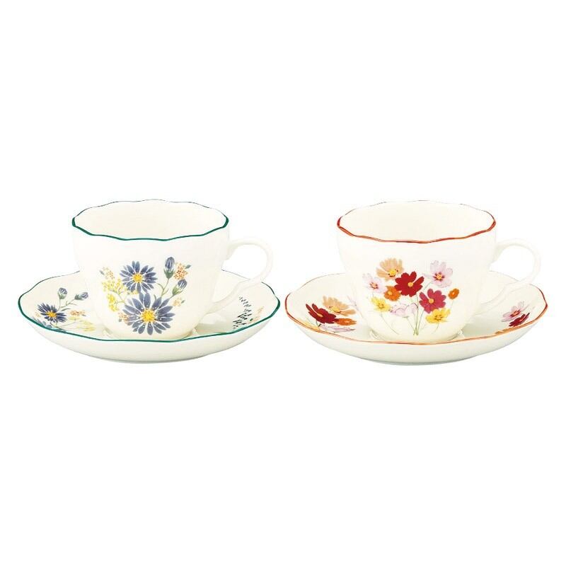 日比谷花壇 ペアカップ&ソーサーセット 孔雀草・コスモス 御祝.お返し,引出物,記念品などのご用途にも好適