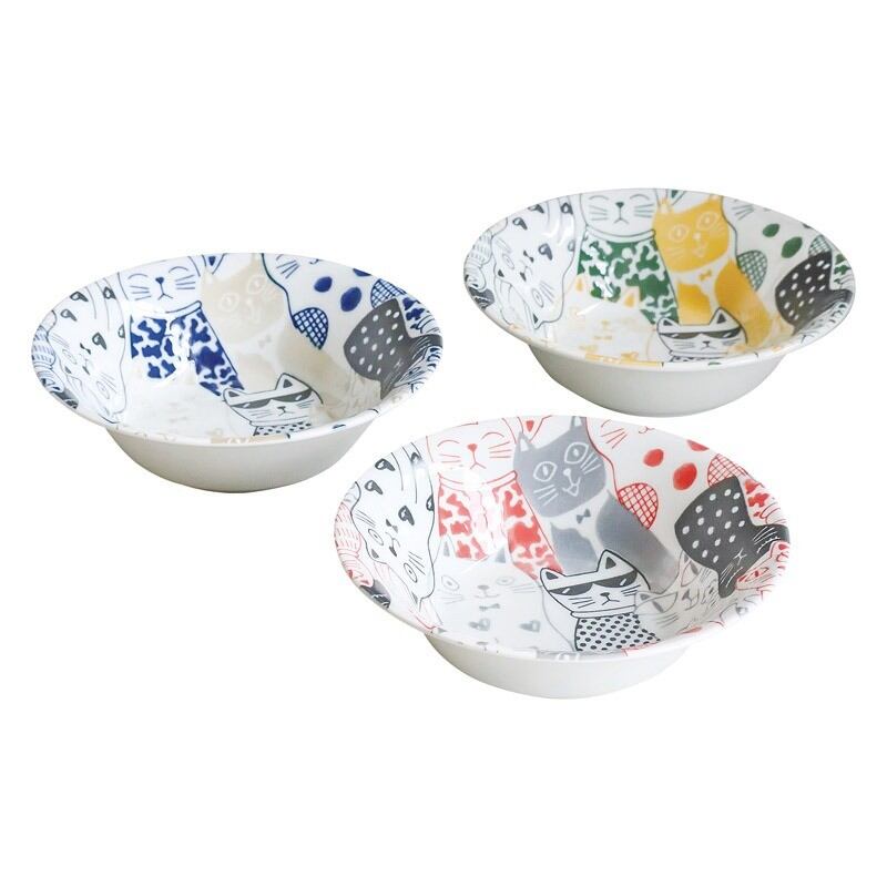 ユーモアと個性あふれるスタイルの8匹がぞろりぞろり。可愛らしい猫いっぱいの柄が特徴的で食卓を明るく彩ります。