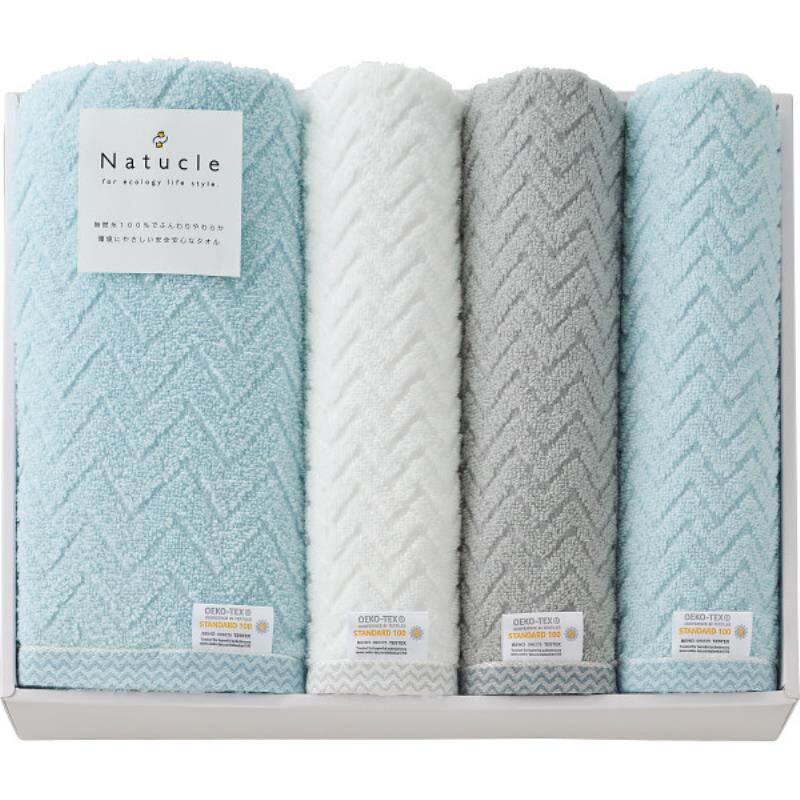 ギフト好適品 ナチュクル ふわふわ無撚糸 バス・フェイスタオルセット Nー80550