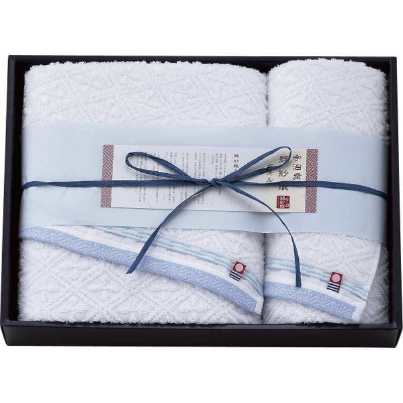 ギフト好適品 今治綿紗織 バス・フェイスタオルセット ブルー