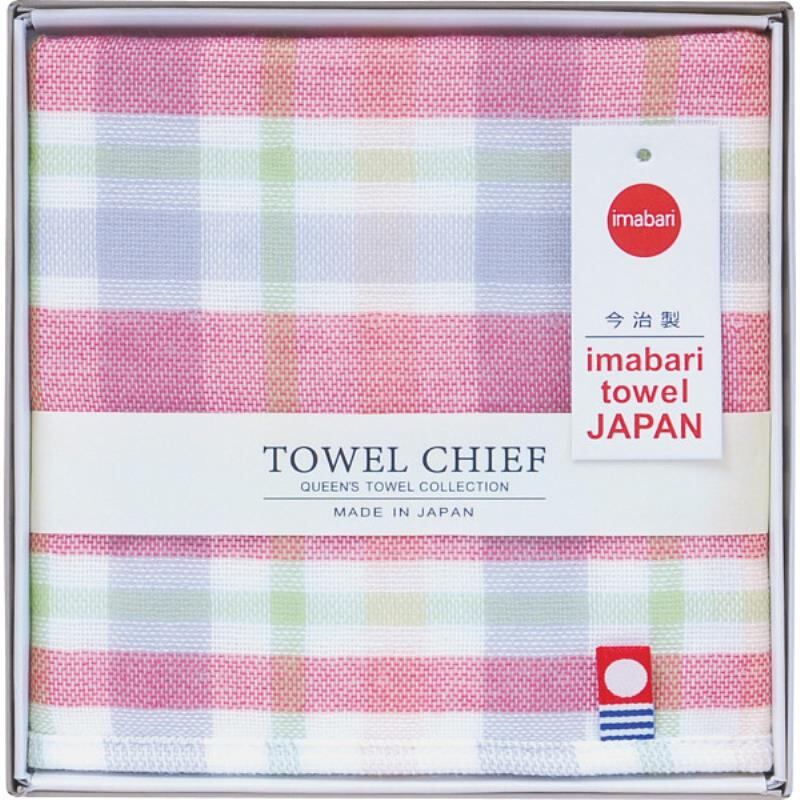 ギフト好適品 今治ガーゼ&パイルハンカチ(チェック) レッド TQS0602101R