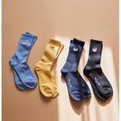 ポール&ジョーのアイコンでもあるネコ、ヌネットのフェイス刺繍が入ったアメリブのソックス。無地なのでスタイリングに合わせやすく、ちらりと見えたときのヌネットがアクセントにもなります。足底は裏パイル仕様でクッション性があり、汗をしっかりと吸水します。