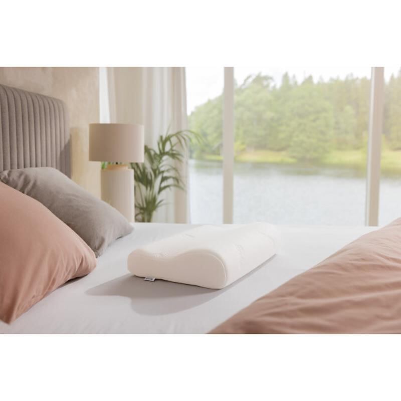 テンピュール(R)の名を世界に広めたスタンダードなデザイン。波形の独特な形状が、頭部から首筋に沿うようにフィットしながらサポート。高い方に首を乗せてご使用ください。