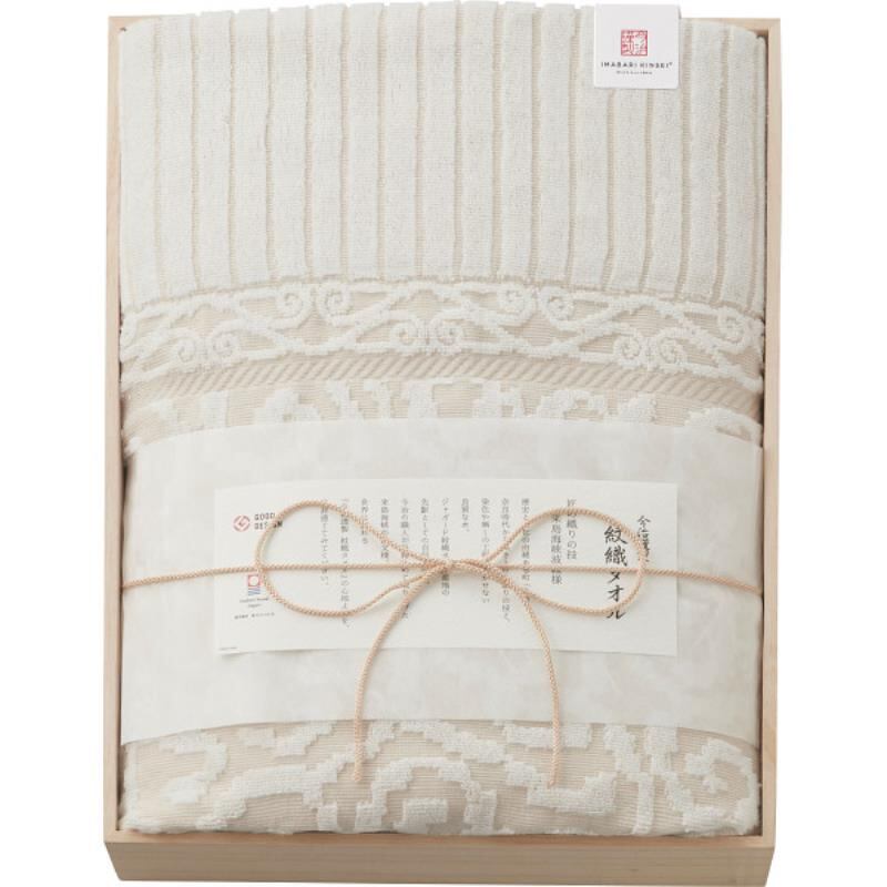 ギフト好適品 今治謹製 紋織タオル タオルケット(木箱入) ベージュ IM10038