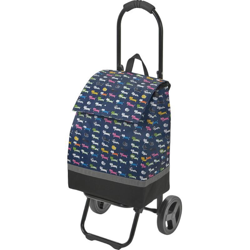 ギフト好適品 ネコ柄ショッピングカート ネイビーブルー 15-5038-80