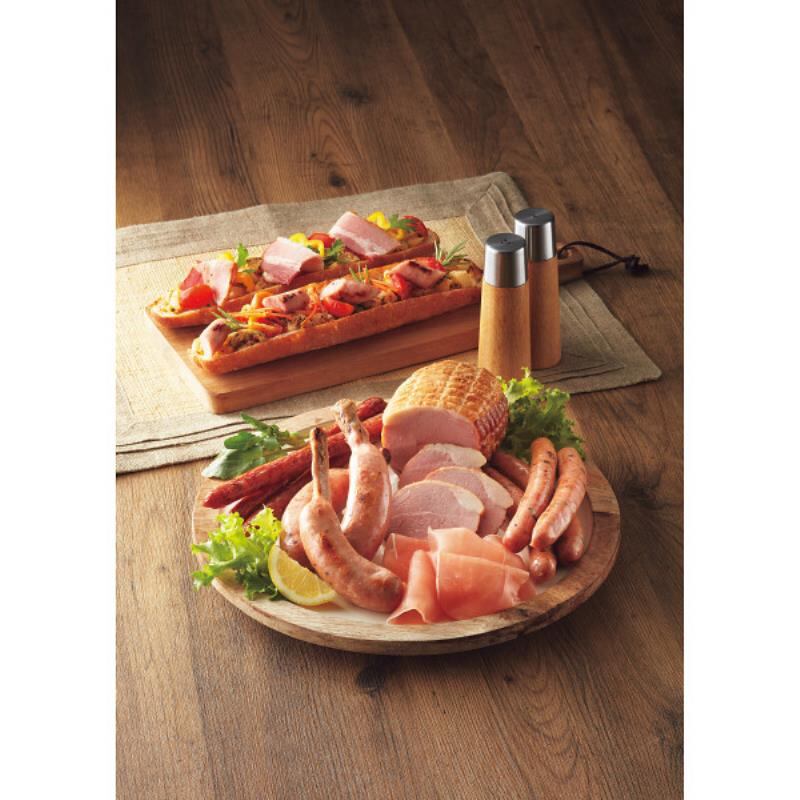 商品内容:●生ハムロース(スライス)40g、炭火焼ベーコン(スライス)80g、スティッククラコウ(ソフトサラミソーセージ)80g、燻しロースハム300g、燻しモモハム300g、荒挽ウインナー100g、ピルカウインナー120g、骨付ソーセージ180g、豚角煮160g