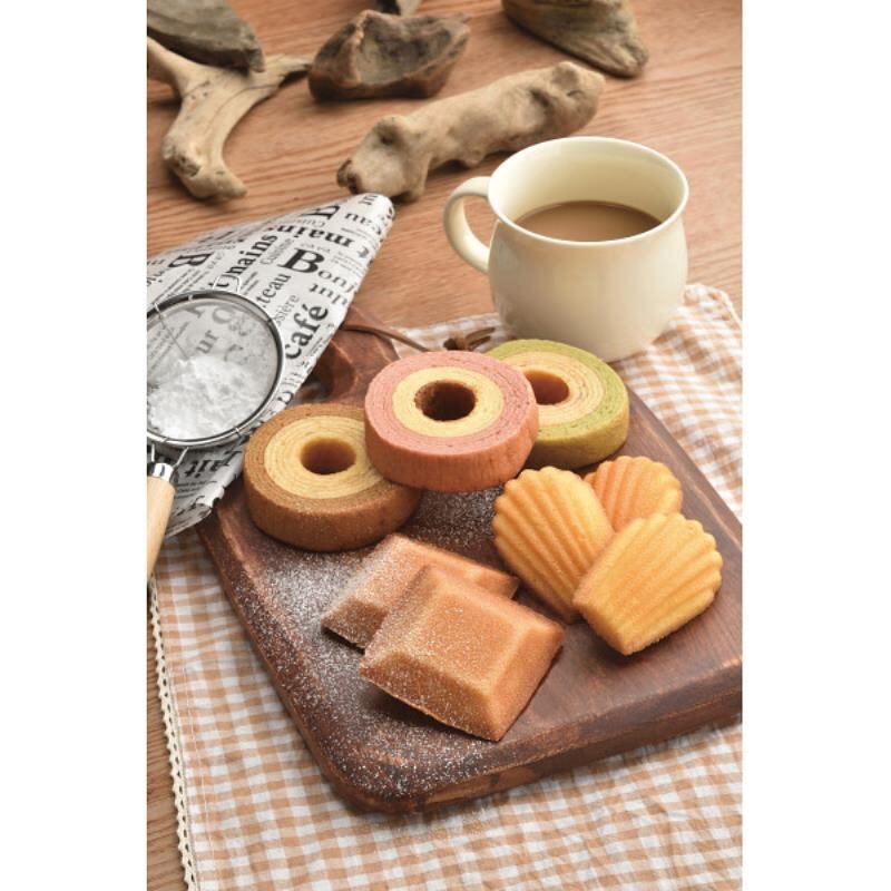 商品内容:●2層バウムクーヘン(キャラメル&ミルク・ストロベリー&ミルク・抹茶&ミルク)×各1、マドレーヌ×2