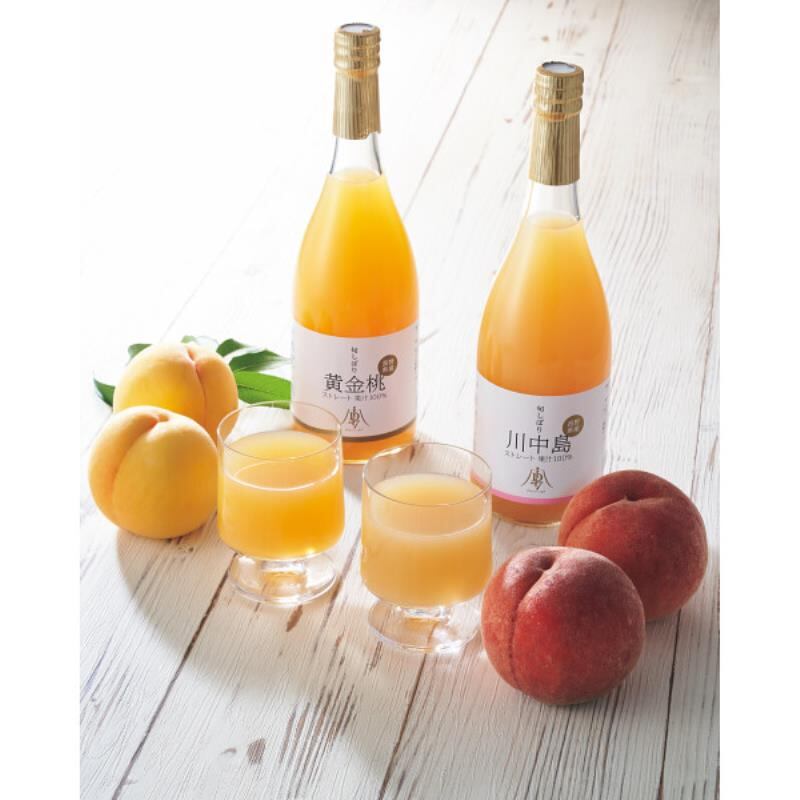 甘い香りが漂う長野県の桃園で収穫した「川中島白桃」と「黄金桃」を品種を限定して搾った、ストレートジュースの詰め合わせです。