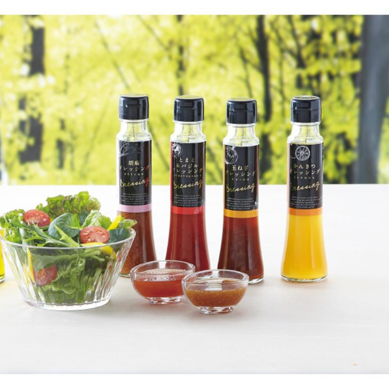 野菜がたっぷり食べられる、見た目鮮やか味いろいろ、美味しいドレッシングの詰合せです。