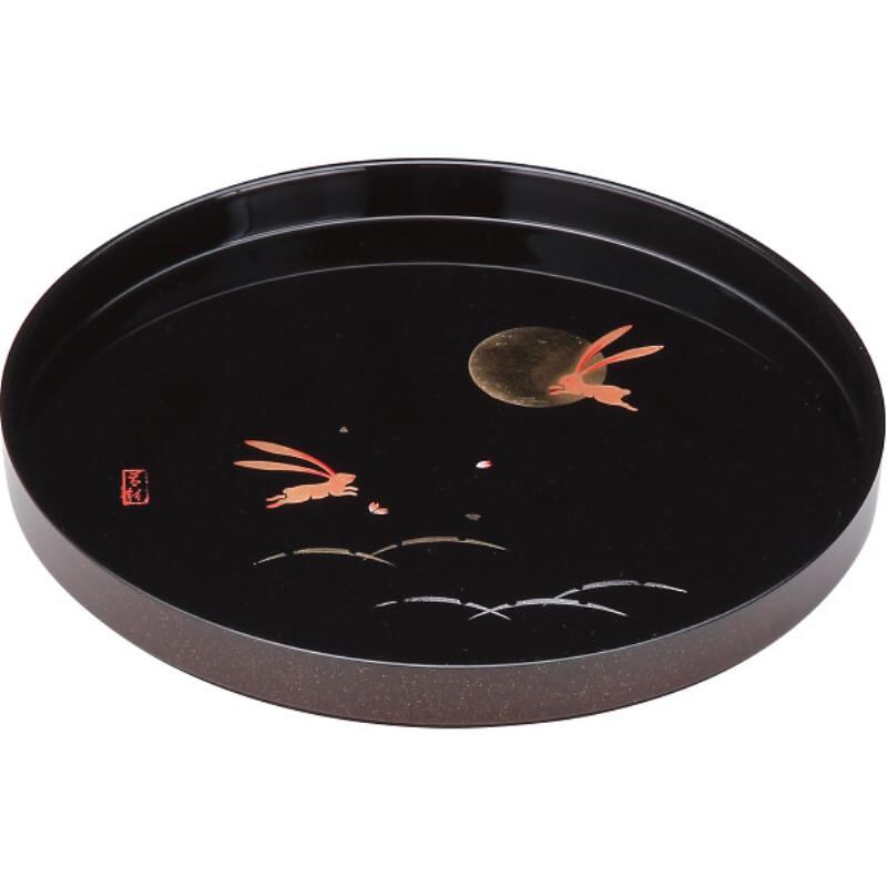 ギフト好適品 紀州塗 月とうさぎ 8寸丸盆 黒 26495