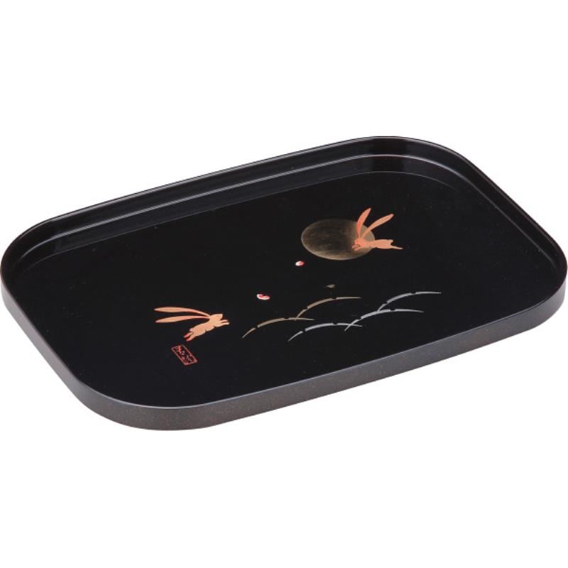 ギフト好適品 紀州塗 月とうさぎ 尺2長手盆 黒 26518