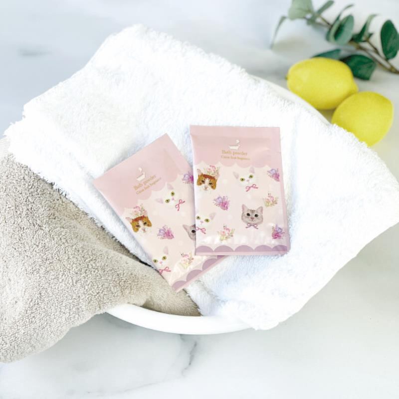 プチギフトにぴったり ねこ好きの方のギフトに。シトラスの香りの入浴料が2個セット入ったギフトセット