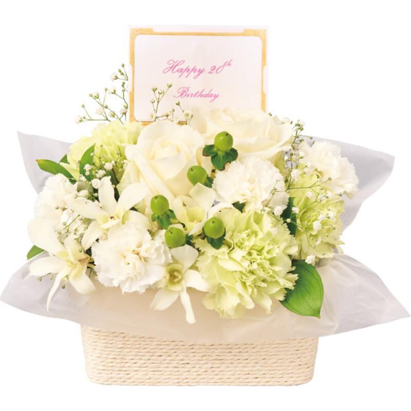 ギフト好適品 バースデーフラワー(生花アレンジ)(お名入れ) ピュアホワイト