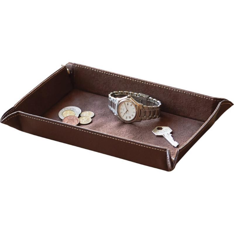 フェイクレザーとメタル金具がスタイリッシュな組み合わせです。ちょっとした物を入れるのに便利で、机や玄関周りで活躍してくれるアイテムです。