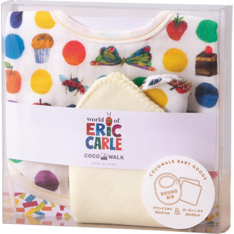 人気絵本のはらぺこあおむしとのコラボシリーズ。何枚あっても助かるスタイとガーゼハンカチ2枚が入ったギフトセットです。