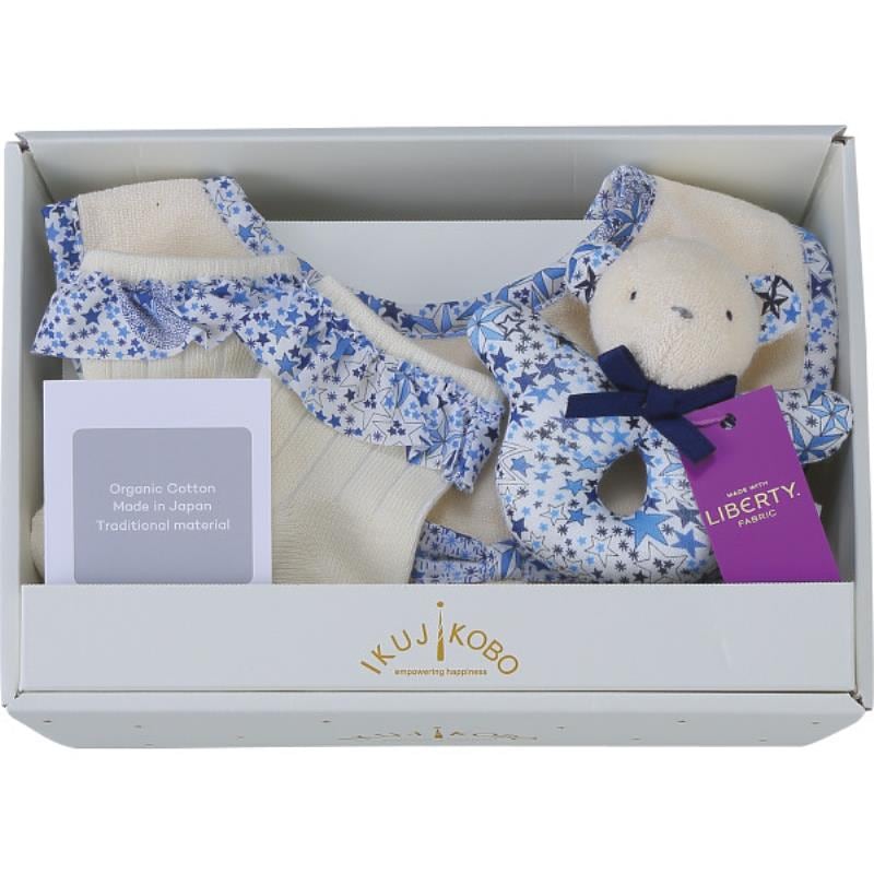 ギフト好適品 リバティプリント使用・ベビーミニギフト3点セット ネイビー 383409
